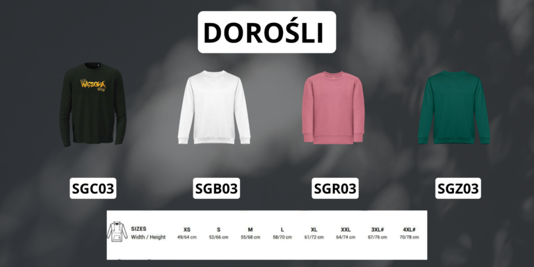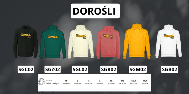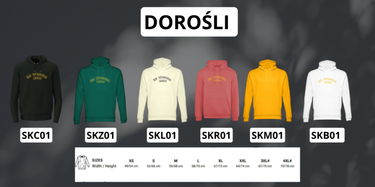 Rozmiary dorosłe XS, S, M, L, XL, XXL