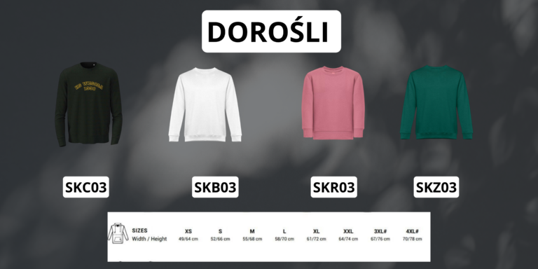 W tytule przelewu Imię i Nazwisko, kod produktu, rozmiar x oraz telefon kontaktowy (przykład: Jan Kowalski, SKZ01, rozmiar M, 555333232)